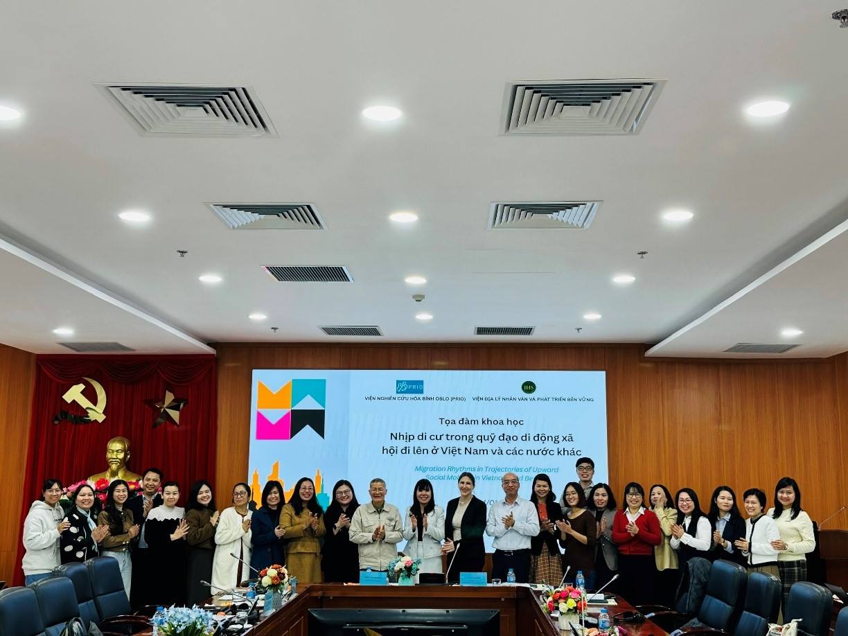 Ngày 14/01/2026, tại trụ sở Viện Hàn lâm Khoa học xã hội Việt Nam (số 1 Liễu Giai, Hà Nội), Viện Địa lý nhân văn và Phát triển bền vững phối hợp với Viện Nghiên cứu Hòa bình Oslo (PRIO, Na Uy) đã tổ chức Tọa đàm quốc tế với chủ đề “Nhịp di cư trong quỹ đạo di động xã hội đi lên ở Việt Nam và xa hơn”. Tọa đàm nằm trong khuôn khổ hợp tác nghiên cứu giữa hai Viện, thuộc dự án “Migration Rhythms” triển khai từ năm 2023.