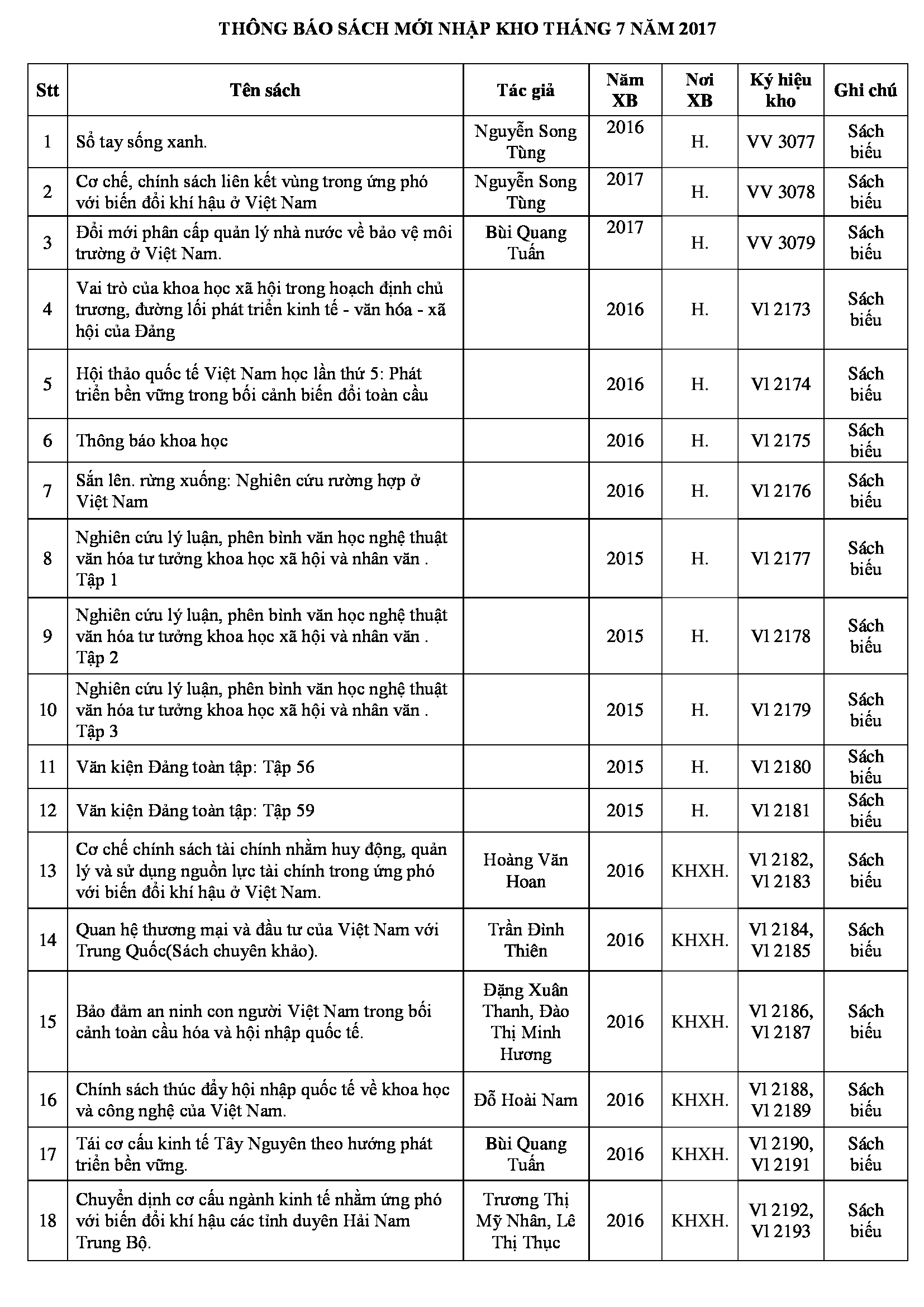 Thông báo sách mới tháng 7/2017