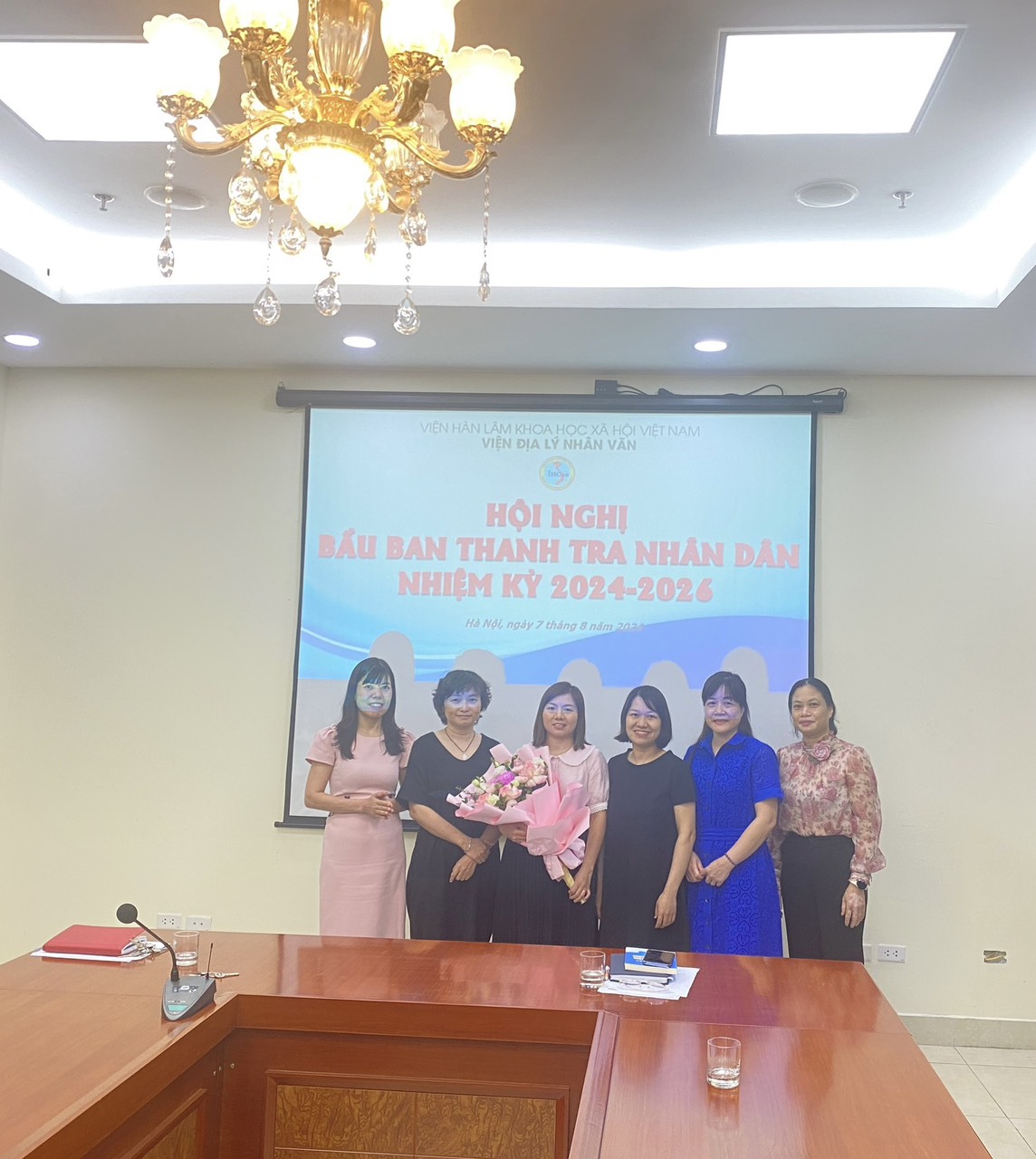 Kết thúc hội nghị, Lãnh đạo Viện Địa lý nhân văn đã tặng hoa cảm ơn các đồng chí Ban thanh tra nhân dân nhiệm kỳ 2022 - 2024 và chúc mừng Ban Thanh tra nhân dân nhiệm kỳ 2024 2026.