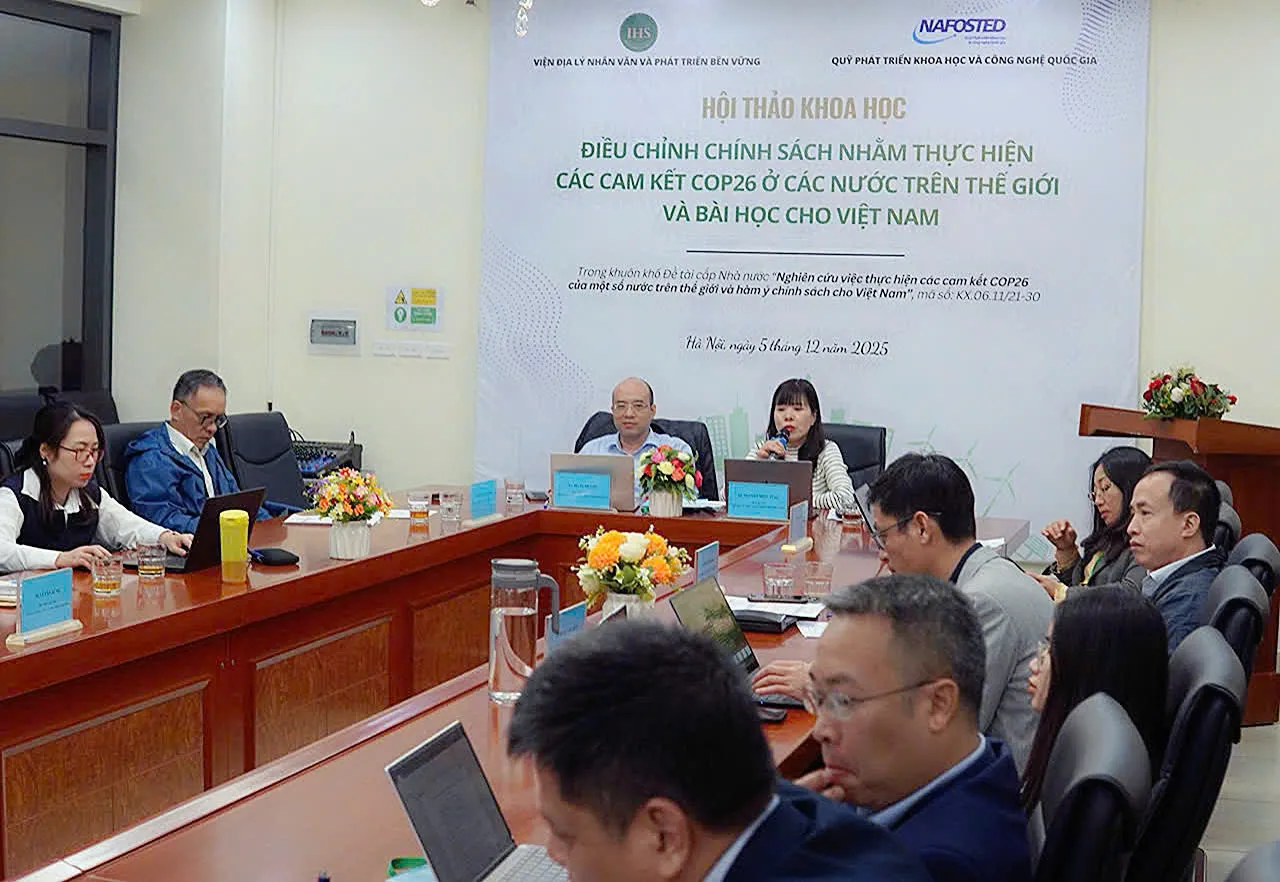 Ngày 5/12, Viện Địa lý nhân văn và Phát triển bền vững – Viện Hàn lâm Khoa học Xã hội Việt Nam đã tổ chức Hội thảo khoa học với chủ đề “Điều chỉnh chính sách nhằm thực hiện các cam kết COP26 ở các nước trên thế giới và bài học cho Việt Nam”.