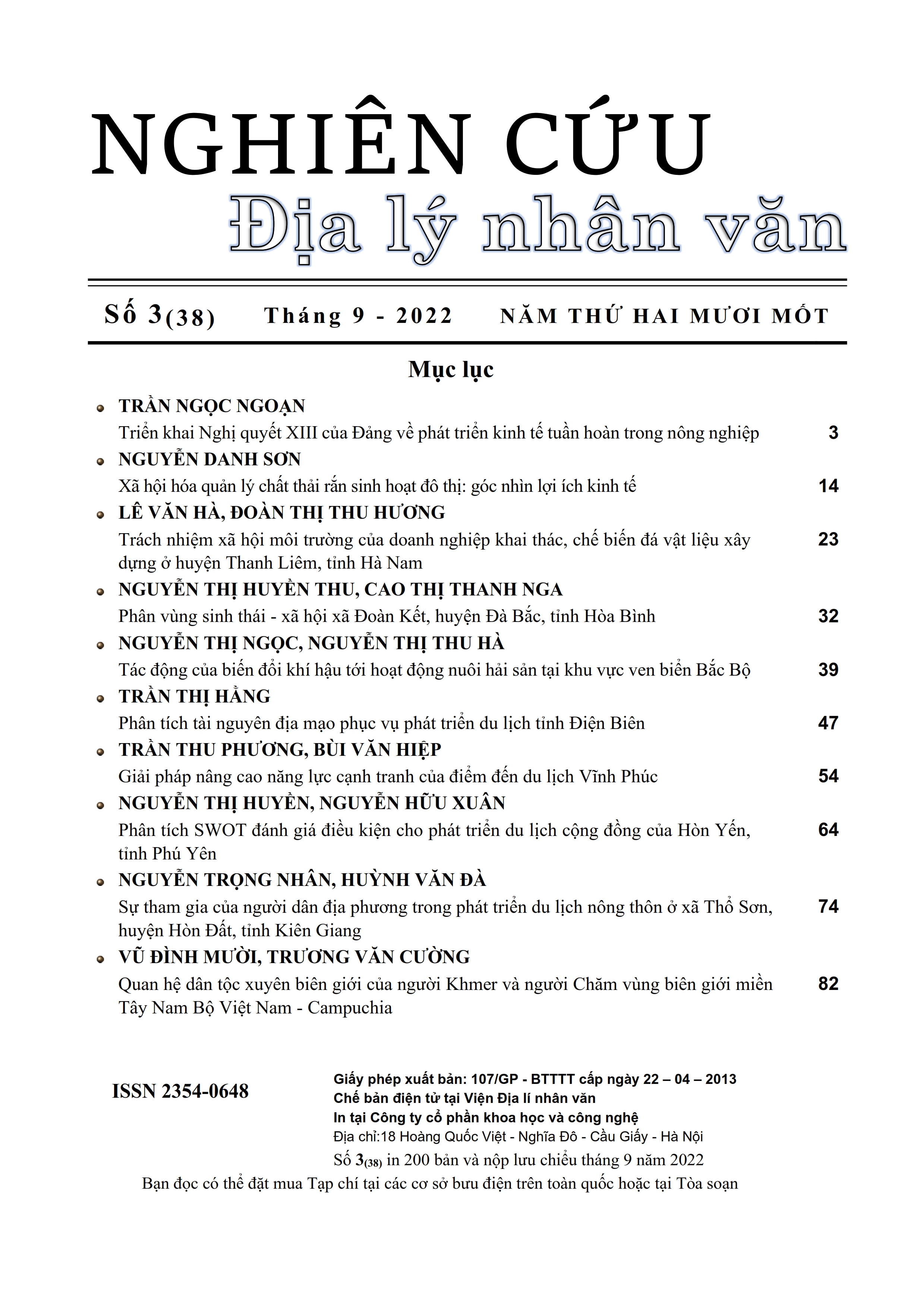 Từ khóa: quan hệ dân tộc xuyên biên giới, biên giới Việt Nam - Campuchia, Tây Nam Bộ, người Khmer, người Chăm