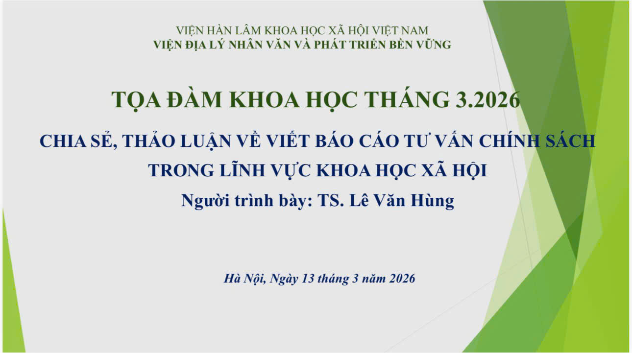 Sáng ngày 06/01/2026, tại trụ sở Viện Địa lý nhân văn và Phát triển bền vững, Chi đoàn Viện đã tổ chức tọa đàm khoa học với chủ đề “Chia sẻ kinh nghiệm thực hiện tổng quan tài liệu và nghiên cứu bàn...